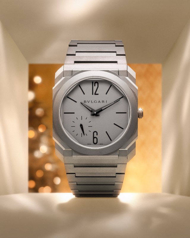 For the upcoming Christmas month, Bvlgari celebrates togetherness with gift-giving by highlighting their signature watch, the Bvlgari Octo Finissimo Automatic. This exquisite watch is renowned for its ultra-thin design and geometrical looks, showcasing Italian watchmaking design with Swiss mechanical precision. The watch comes in an easy palm-size box suitable for gifting or personal indulgence for this festive season.