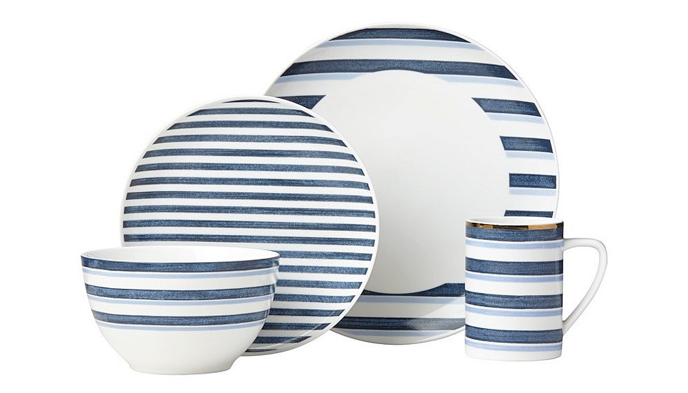 If you drink coffee from a mug emblazoned with an ironic message, perhaps it’s time to reevaluate. Or at the very least, leave it at the office. In Italy, sitting for any meal (or standing in an espresso bar) is considered an event. Plates and bowls reflect that. Architect Luca Andrisani has made a graphic case for dining on something other than white via his new Blue Azzuro collection for Lenox Corporation.