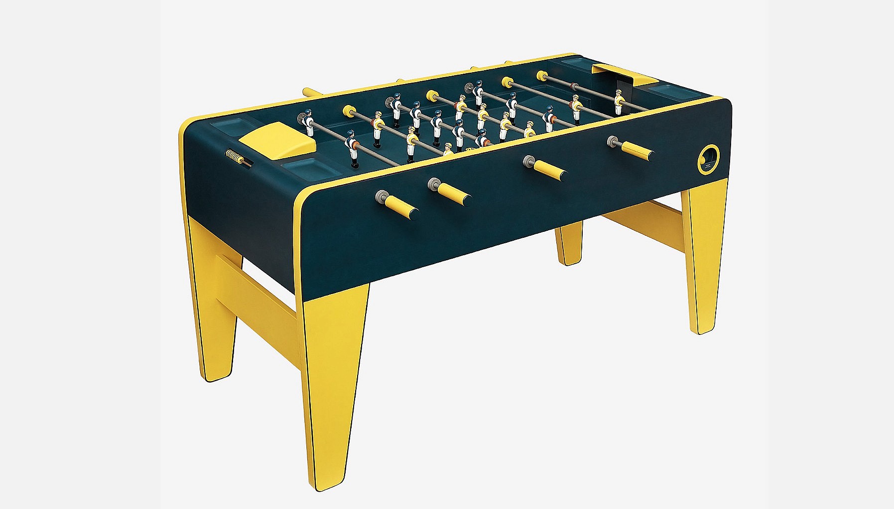Considering the brand’s equestrian heritage, it is perhaps unsurprising that Hermès have elected to go with a horse racing theme. Each of the players have been painted wearing traditional jockey silks, helmet and goggles included. The table, boldly coloured in yellow and green, is made out of maple wood and upholstered with calfskin — meaning that Hermès’ legendary leather craftsmanship and detailing will be on full display.