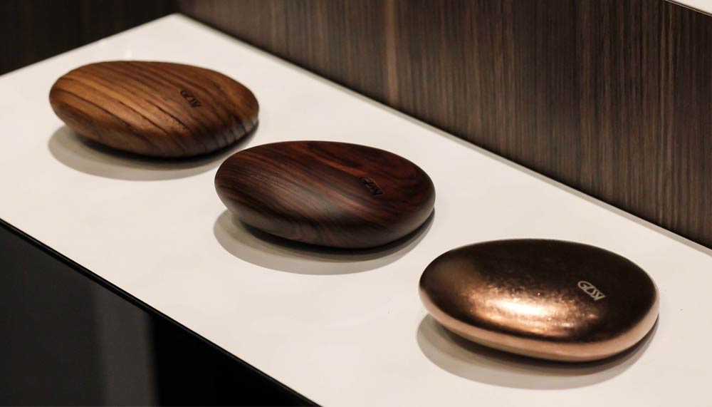 Named Equilibrio, the line conveys the art and aesthetic of stone balancing – showcasing a strong relationship with water and relaying the energy that is created when the stones are aligned. These parallels were turned into physical archetypes by Lesko and designer Giuseppe Maurizio Scutella. The result is an idiosyncratic form that replicates two ergonomic stones balancing upon each other. Mimicking the materials and contours of natural stones from the quarry, Equilibrio brings an elemental slice of life back into our living spaces, a reminder of our fundamental connection to nature.
