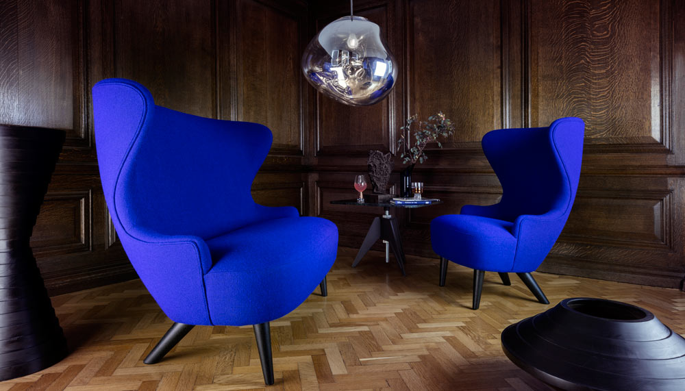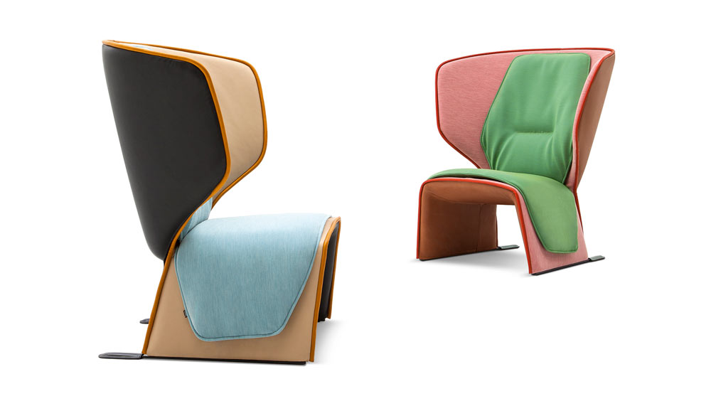 Daiken’s Moving Tatamis by French designer Jose Levy introduces the first furniture collection of low seating, tables and storage cabinets to be produced in tatami woven from Japanese traditional paper washi and not straw for better resistance. On a mission to revive the British furniture industry, Tom Dixon is back with the Micro Wingback armchair, his contemporary take on archetypal 17th- and 18th-century wingbacks and balloon backs, but shrunk to Alice in Wonderland dimensions. Made in the French Loire Valley, Drugeot Labo’s Pliages asymmetrical mini bookshelves in solid oak by Herve Langlais touch down on the wall with lightness in a wide choice of colours appearing on the underside.