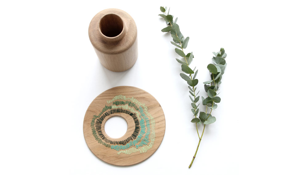 The Cassina Gender armchair by Patricia Urquiola is all about chromatic and material blends, with a soft cushioned interior, cocooning and flexible high backrest, and coloured leather profile, available in five colour combinations. Bernardaud’s Surface Coloree B29 tea/coffee service by Argentinean artist Julio Le Parc features platinum mirror tumblers reflecting the vibrant pattern of the platter or saucer or vice versa, producing a welcome kinetic effect and optical illusion reminiscent of his artworks. Toulouse-based ceramic artist Ismael Carre blends clean shapes and poetic shades with rhythmic patterns in a pure graphic style in his Hauts Grades collection comprising cups, bowls, bottles and vases.