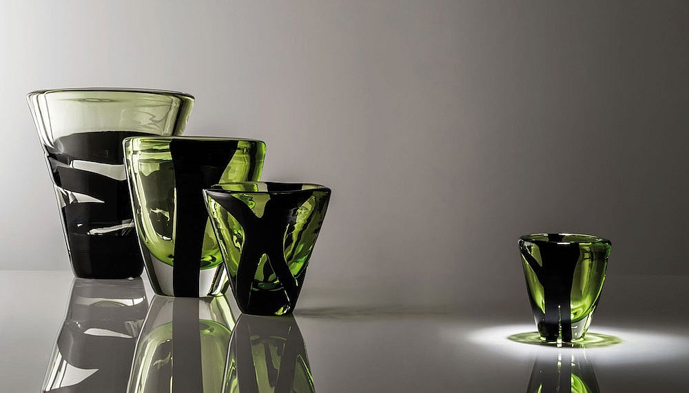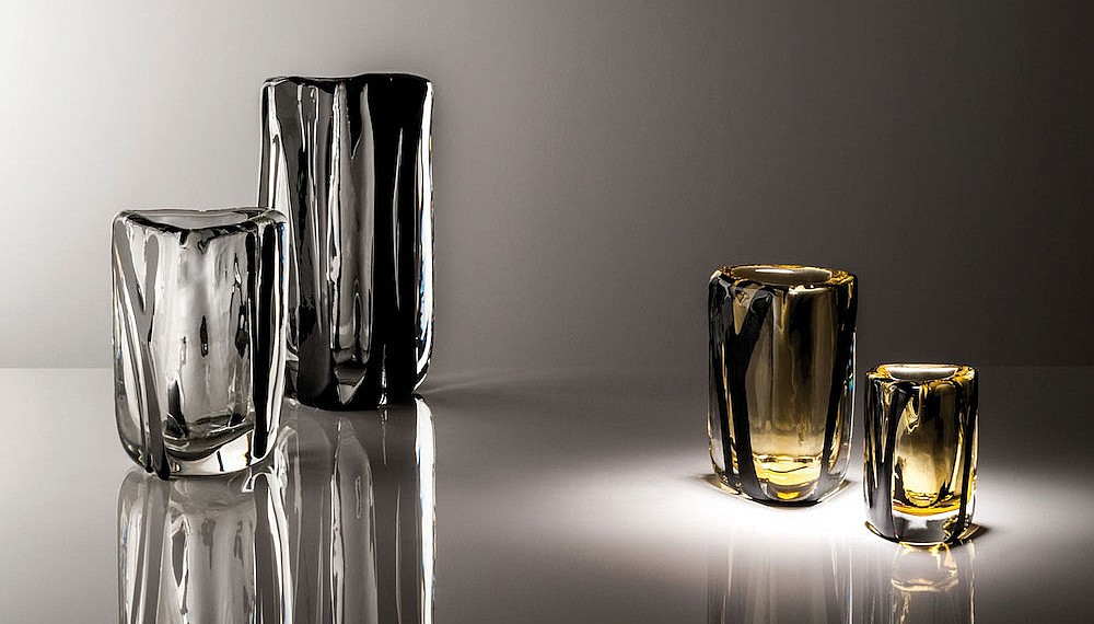 Glass-blowing is a labour-intensive art. Venini has been at it since 1921, pulling from traditions and techniques dating back to the 13th century. Black Belt was an aesthetic and technical challenge, which meant Venini deployed their master craftsman for the series. To achieve the layered effect of colour and clarity, artisans had to lean hard on a technique known as “a sbruffo” (which means “puffed”) paired with a process called “sommerso” (or “submerged”), before the last, chunky passage of black glass bands — like the auteur’s leather calling card — were pulled and placed on the hot surface of each vessel.