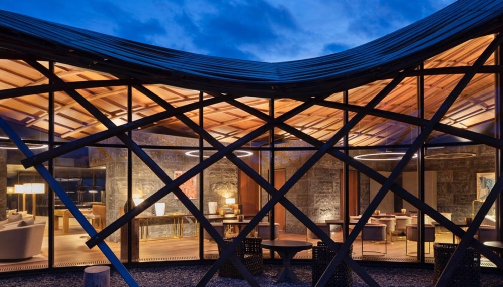 The Lindis uses natural materials in its interior, using just one type of stone and timber (spotted gum hardwood) throughout. The latter is coated in a variety of finishes to bring out its unique markings, and acts as the skeleton for the curved architectural framework. Not an easy feat, given that hardwood is notoriously difficult to manipulate.