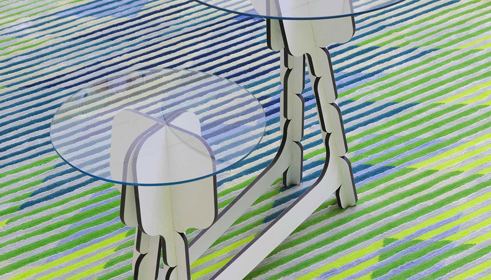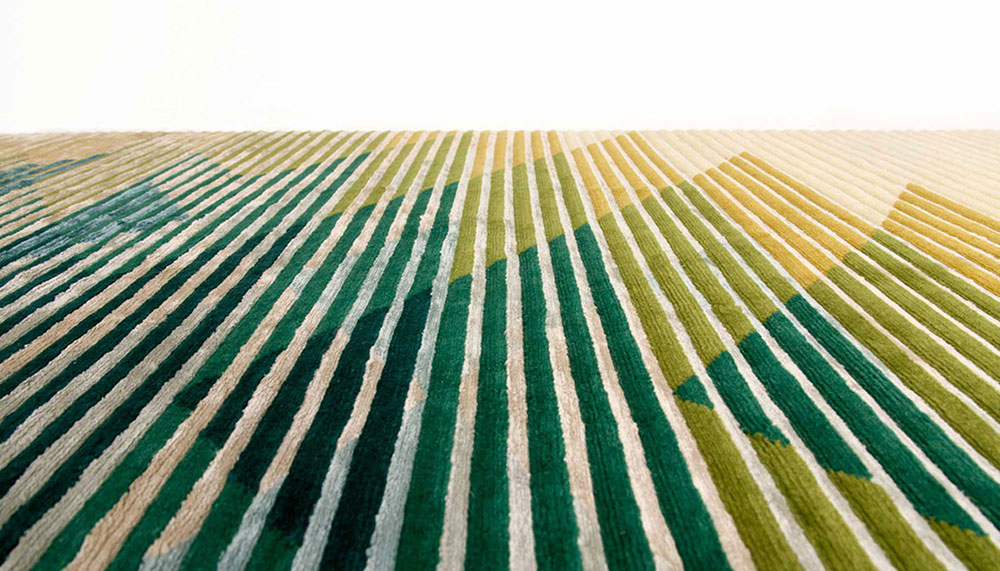 Shifting and never settling, just like the reflections of light and colours on a lake’s surface, the Lake Rug is handcrafted from wool and bamboo silk in Nepal. This contemporary take on traditional kilim flat weaving is the product of Raw Edges – designers Yael Mer and Shay Alkalay’s fruitful partnership. Available in three sizes and four colours, the varied height of the rug’s pile creates a sawtooth profile, with a different shade on the two edges. Part of the Lake collection, the Lake rug was created for Persian rug company Golran.