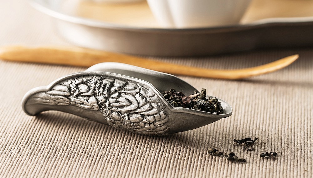 The collection takes reference from the idyllic natural landscapes of the Far East, where the rugged peaks, precipitous cliffs and towering karst formations tumble dramatically to mighty rivers. These scenes, wrapped in Oriental clouds, have been a potent source of inspiration for countless generations of poets, scholars and artists – many of who sipped tea while contemplating their works. The mountains are featured prominently on the collection’s teapot and tea caddies, with Tranquility also includes teacups (porcelain, with a pewter handle) as well as items peculiar to the art of tea – a Yixing clay tea pet to ‘raise’ with tea liquor, a pitcher for tea service and a delightfully ornate tea scoop.