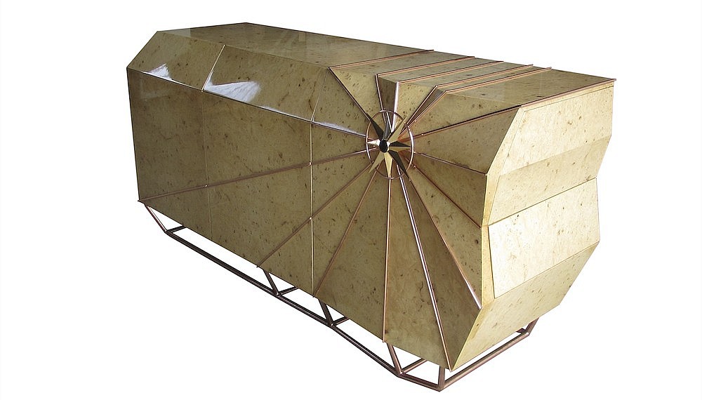Inspired by an iconic parish in the southern Algarve of Portugal, the Sagres sideboard (€11,780/RM56,282) is an impressive structure crafted from solid poplar wood and gold- and bronze-plated steel. Its compass rose and latitude lines reference the intrepid nautical explorers of history risking their safety on the open sea, pitting themselves against fierce winds and years of trial and error.