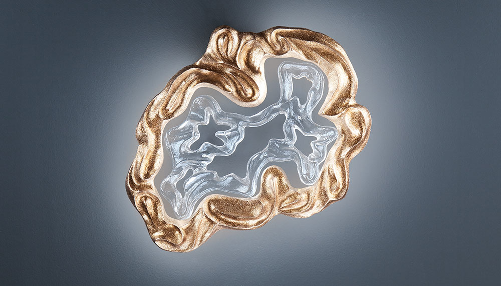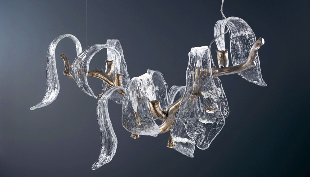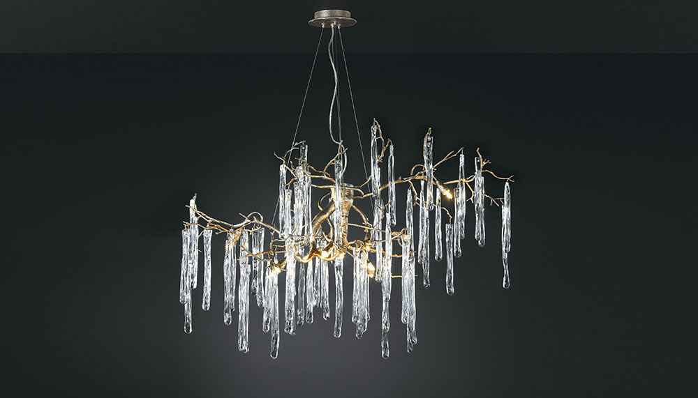 As its name suggest, the Luna chandelier takes direct inspiration from the moon, sharing the same bronze-and-glass circle motif with other items in collection, including wall sconces, table lamps and cascading waterfall for staircases. Other Serip collections are anchored to other natural forms; Coral simulates the intricate web of coral reefs in bronze, Pathleaf is a carpet of bronze leafs on a forest floor in autumn, Wind captures the frozen trajectory of reeds blowing in the breeze, Glamour uses frozen shards of icicles as muse and Waterfall celebrate liquid movement in all its forms. All are handcrafted at Serip’s studio in Lisbon, then flown across the world to be installed in high-end projects, with the ornate style resonating particularly in Russia, China and the Middle East.