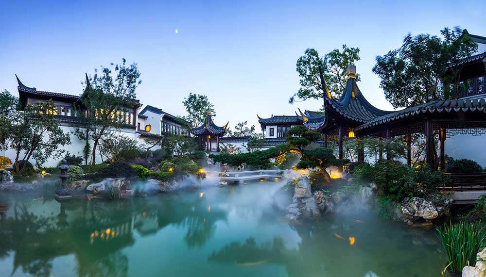 Mist-covered ponds, arched bridges, and traditional Chinese buildings with swooped-edge gables grace the 1.6-acre grounds of Taohuayuan – also known as the One Billion Luxury Garden Home, thanks to its one-billion-yuan (around US$154 million/RM628 million) price tag.