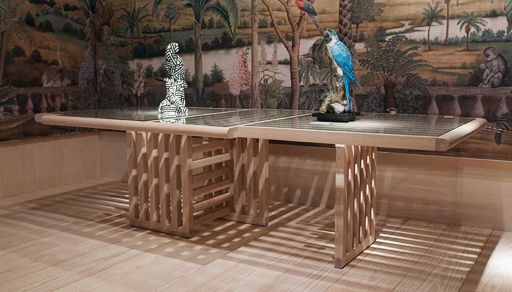 Autoban also debuted the Maze table featuring a bold, graphic aesthetic that uses the intersection of two patterns, playing on a series of optical illusions. A contemporary take on kundekari – a time-honoured woodworking technique from the Anatolian Seljuk and Ottoman eras – the table also embodies their architectural approach to design and their characteristic layering of materials, geometry and textures.