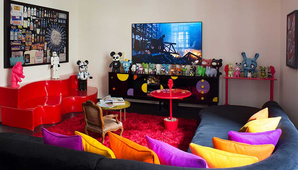 Behind the stately facade of a house on Paris’s Avenue Foch is an interior of great style and originality. It is the fruit of a collaboration between the home’s owner, a collector with a taste for pop colours, the architect Alain-Dominique Gallizia and Victor Gastou, an art dealer who sells pieces at Gallery Yves Gastou, which his father, Yves, established on the Left Bank in 1984. “We are guardians of the temple, commissioning young artists, restoring pieces (from the 20th century) that are in a bad state, and fostering the pleasure of collecting,” says Victor. “We are not interior designers, but we can share our expertise, and we love to fill empty rooms with our furniture. We work with clients to express their personality.”