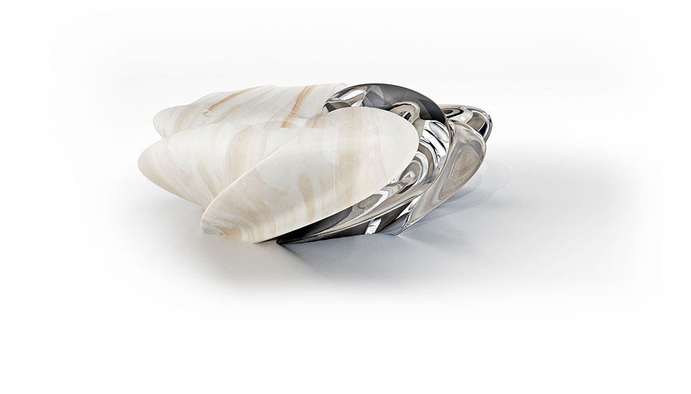 The Malea table (starting from €110,000, RM510,000), which made its debut in April at Salone del Mobile in Milan, combines two interlocking elements of honed and polished white onyx and acrylic. The design contrasts the texture of the carved solid stone against the transparent acrylic and celebrates the fluidity of natural systems.