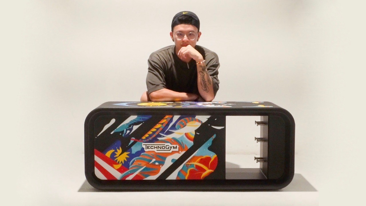 To infuse Malaysian spirit into Technogym’s bench using graphics and ideation. Rather than making it feel like a mere sticker, I aimed to create a harmonious coexistence with the bench. My main goal was to put the Malaysian spirit on the global map. I admire Technogym’s constant innovation in fitness equipment and solutions, and I hoped to achieve a similar iconic status with my art—one that could withstand the test of time.