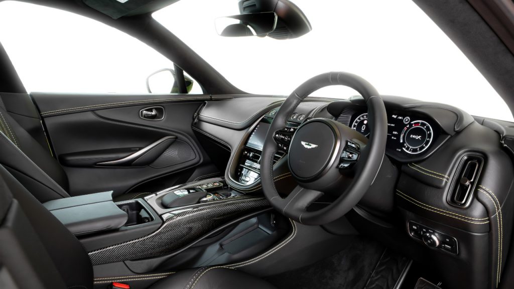 Inside, it is Aston Martin through and through. The cabin architecture has that familiar cocooning feeling, but headroom and legroom is not compromised in the least. The powertrain was designed specifically to leave the rear footwells with plenty of space. There is a broad range of options to customise the look of the interior, including various veneer options of woods, flax composite, or carbon fibre, and the upholstery could be a woven wool option that is the first of its type in a production car. Traditionalists, though, will surely opt for the sumptuous leather that Aston Martin sources from Bridge of Weir, a Scottish company that has been supplying some of the finest leathers in the world since 1905 – and with which Aston Martin has had a relationship with since the DB5 of the 1960s. If the exact shade or grade of leather is not in stock, the marque’s bespoke Q service will make it so, allowing the customer to have the versatile, comfortable, and sporty SUV of their dreams.
