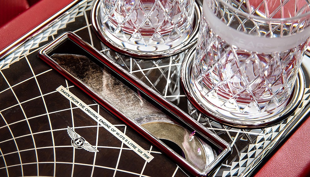 Open the rear door of the just-announced 2019 Bentley Mulsanne W.O. Edition by Mulliner, and there, exquisitely displayed beneath a piece of glass in the highly bespoke rear armrest, is a sliver of the original crankshaft.