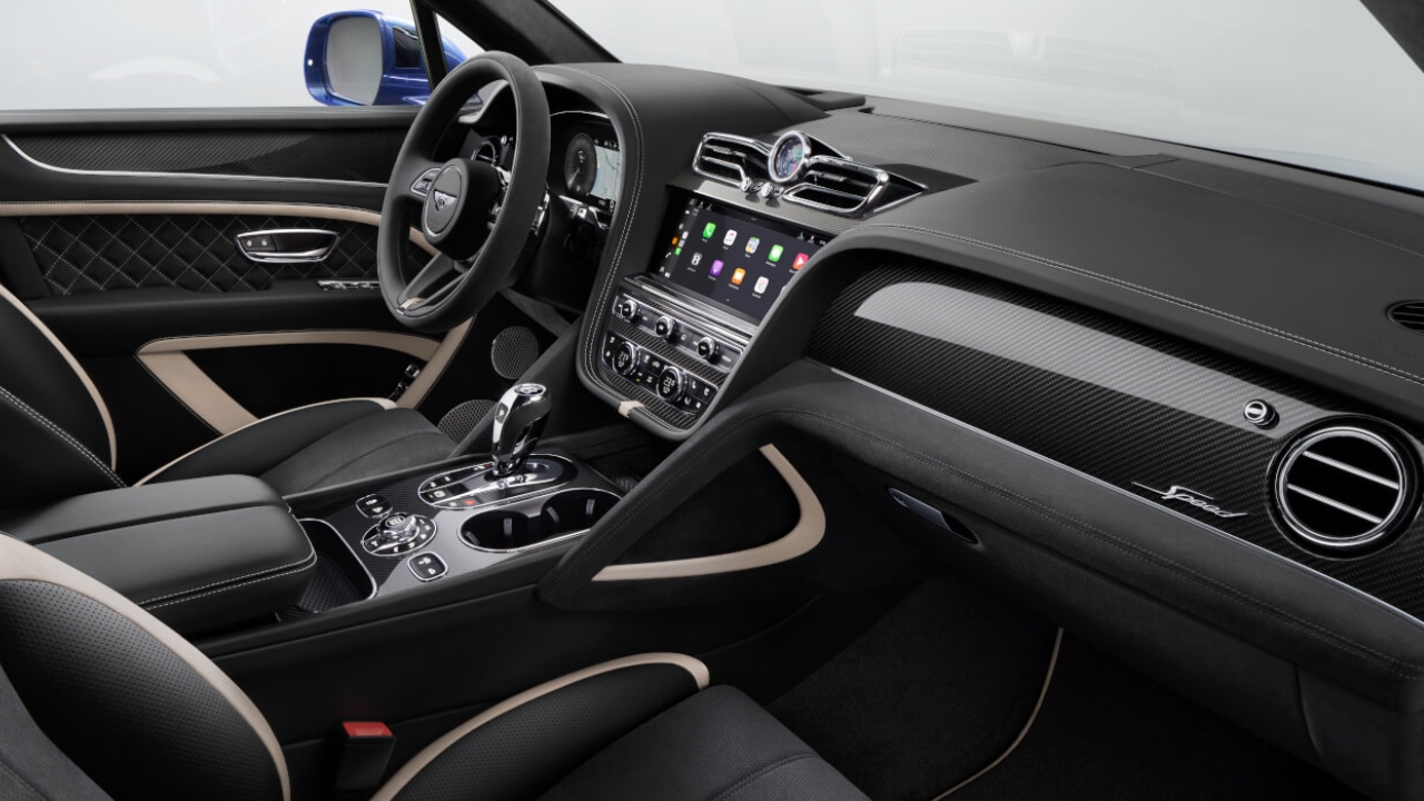 As you might expect from a Bentley, the attention to detail doesn’t stop outside the car. Inside, you’ll find a unique Speed interior with contrasting colours, Alcantra trim and details like the diamond quilting found in the Mulliner Driving Specification. The centerpiece of the five-seat cabin is the Bentayga’s massive 10.9-inch infotainment screen from which drivers can monitor the vehicle, navigate and choose entertainment options. The SUV also includes a fully digital driver’s information panel similar to the Continental GT and the new Flying Spur.