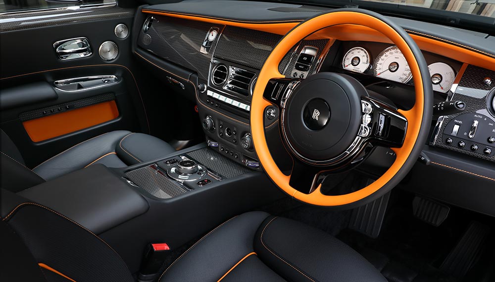 At any rate, the Rolls-Royce Black Badge cars do have a hidden, wilder side because, while their exterior may be black, there are bold hits of orange and red in their interior upholstery (Ghost and Wraith respectively).