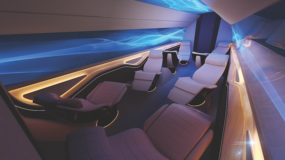 Zen’s OLED walls project any interior layout you might want, from cosy and familiar to restful or keep-you-alert. “Others are experimenting with mood lighting. We’re taking it to the next level,” says Christopher Mbanefo, CEO of Yasava. “We can design wood veneers without actually using wood. An owner can change the design midflight from wood to, say, a stone inlay by pushing a button.”