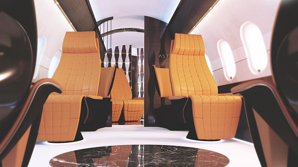 Instead of large, leather recliners, you’re presented with sleek seats that remind one of those in a futuristic spacecraft. The Swiss design firm’s Aïana Wave “anti-gravitational support system” – or, as a layman would call it, the seat – was engineered with medical-flight specialists to improve circulation, breathing and sleep quality during long flights.