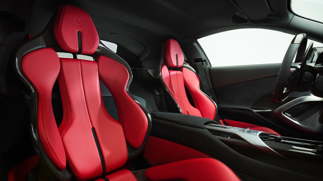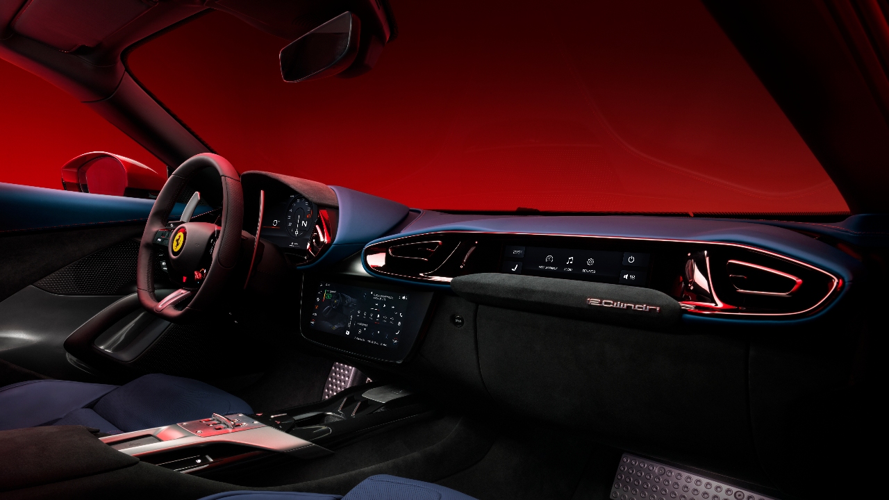 Driver-adjustable MagneRide magnetic dampers are matched to the brake-by-wire system from the 296 GTB—the six-cylinder hybrid that stops quicker than any current Ferrari. And the Side Slip Control system, the nerve center for Ferrari’s traction-and-handling systems, reaches its 8.0 version and combines with multi-axis sensing that allows individual braking at each wheel.
