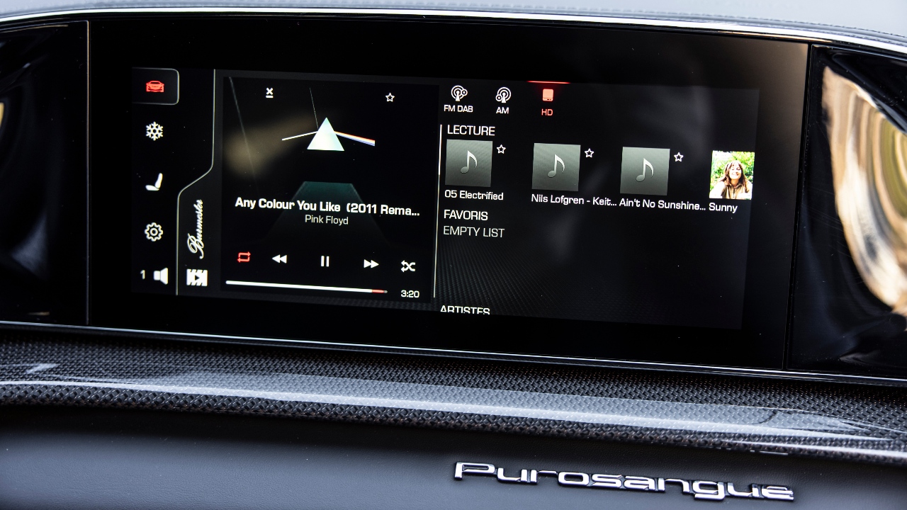 One thing that might at first seem gimmicky is the fact that the rear doors open backwards. It gives the Purosangue a distinctive visual flair when they are open, but they are much more than a ‘look at me’ moment. Rear-hinged doors make getting in and out of the car easier, as anyone who has been in a Rolls-Royce will attest. This is especially welcome because, to keep the wheelbase as short as possible for compactness and agility, the rear doorways are actually quite small. The doors are harder to reach and hence close when seated inside, but this is not an issue as they are electrically operated. From the outside, pulling the discrete tab on the B-pillar causes the rear doors glide noiselessly open. From the inside, a button press performs the same function. The front doors are not electrified, another example of Ferrari’s thought process when designing the Purosangue—the additional complexity and weight of electrifying the rear doors were deemed a necessary concession, but not for the front doors.