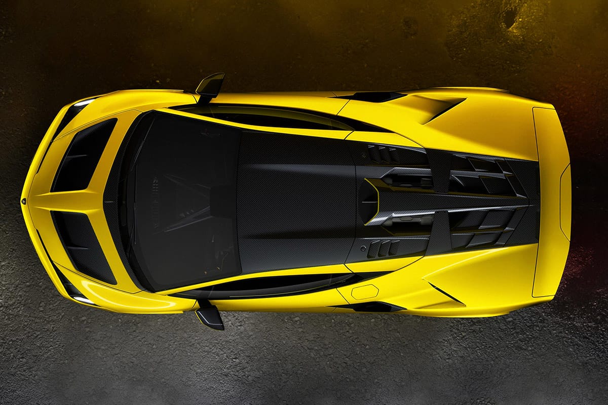 Thus, its widened and lengthened body—when compared to the Revuelto—has been designed in a very graphical way, with fewer lines, broad shoulders and surfaces, a long tail, and a peaky front. The overall effect is quite selachian, and this is no accident. “It looks very much like a shark,” Borkert says.
