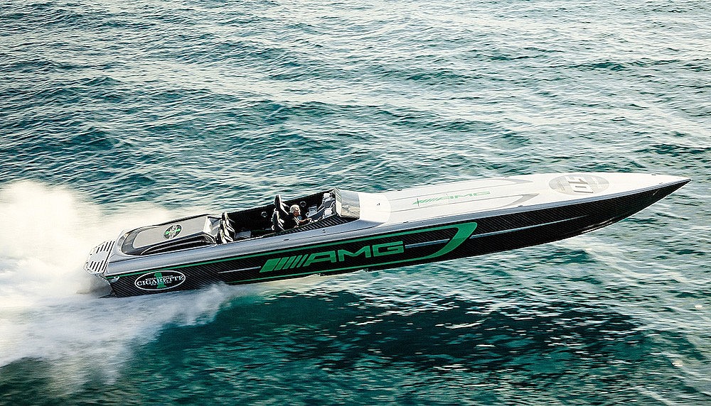 Exhilarating speeds in the Cigarette Racing Mercedes-AMG 50 Marauder