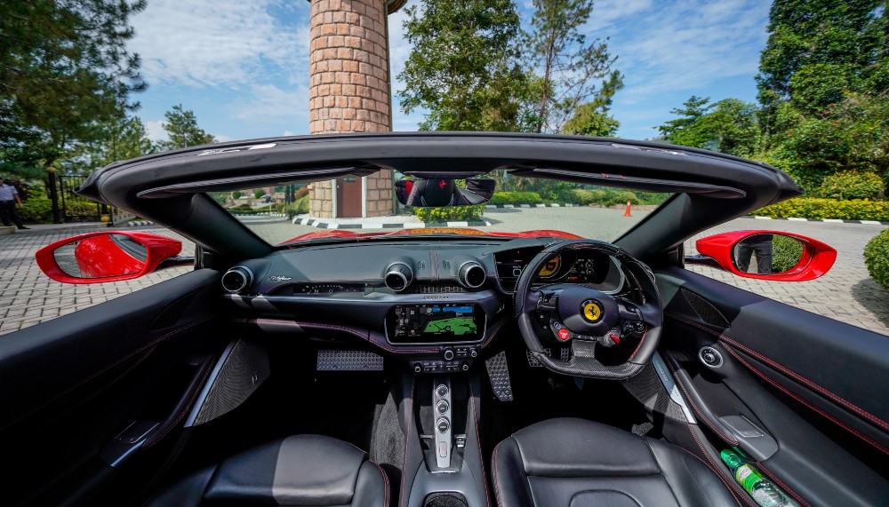 The powerplant is a modest offering by today’s Ferrari standards, but 591bhp is nothing to sniff at, especially when it stems from Ferrari’s award-winning line of turbocharged V8 engines. It beats out its predecessor, the California T, by 39bhp and is some 65kg lighter as well. The 0-100km/h sprint clocks in at 3.5 seconds and 0-200km/h at 10.8—it is not ground-breaking, but it is plenty quick and quite capable of keeping up with the rest of the pack, up to its more than 320km/h top speed. More importantly, turbo lag is unnoticeable, and the response is perfectly organic under the foot—and, perhaps even more importantly, delivers true on the Ferrari promise of musicality. It sounds not quite as shrieking and thunderous as some of its V12 cousins, but is always in tune, exuberant and joyful.