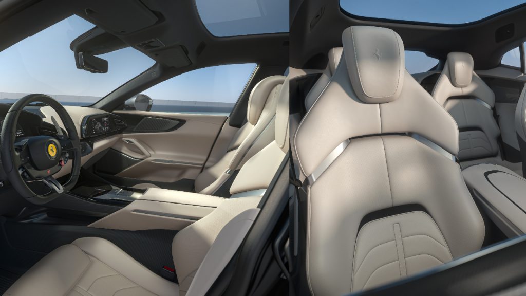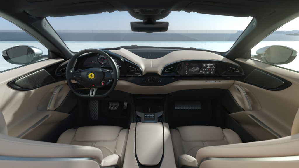 So, how will it drive? We’ll find out in a few months, but Gianmaria Fulgenzi, chief product development officer, promises “an unprecedented range of abilities,” along with instant throttle response and “never-ending acceleration” from the V-12. He also says the quad-tailpipe exhaust has been tuned for “maximum harmonics,” with a “GT soundtrack at low rpm that increases to a pure Ferrari sound.”
