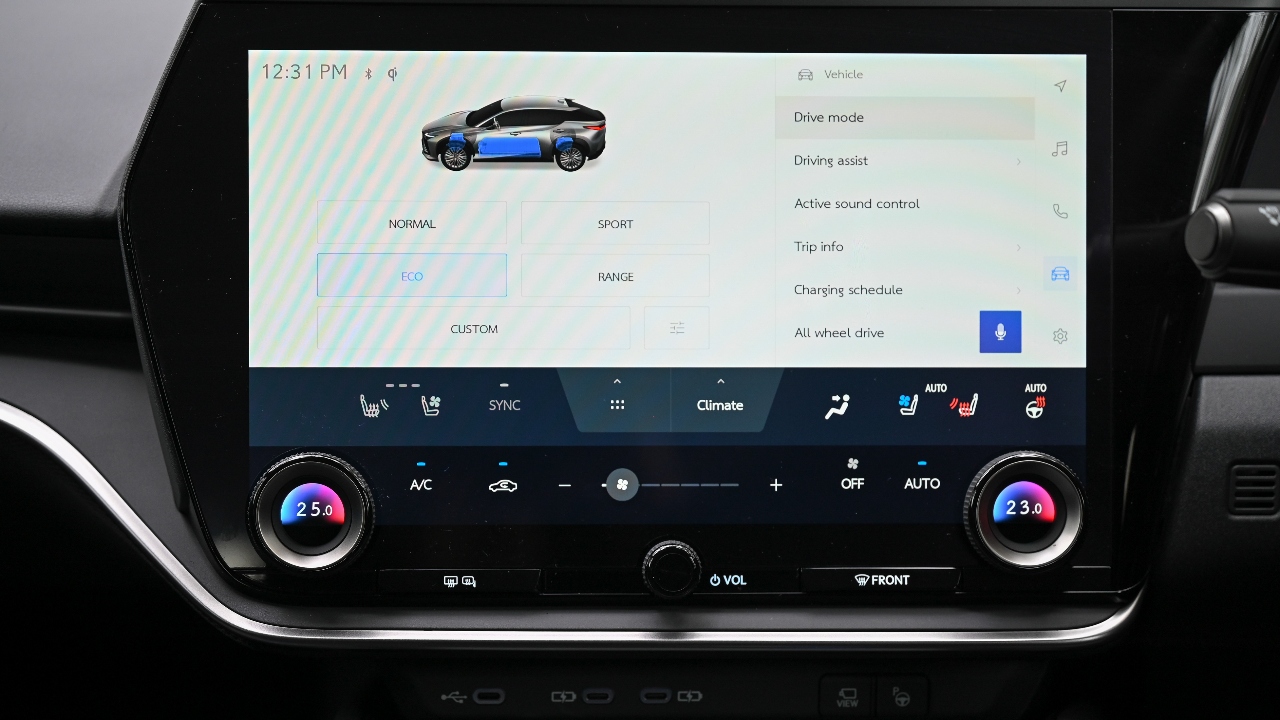 The RZ is a quiet ride as well, and not just because it is electrically propelled. Some of the considerations to reduce wind and road noise are an all-around seal for the bonnet, a vibration-damping sheet inserted in the roof, and acoustic glass used in the front and rear windows.