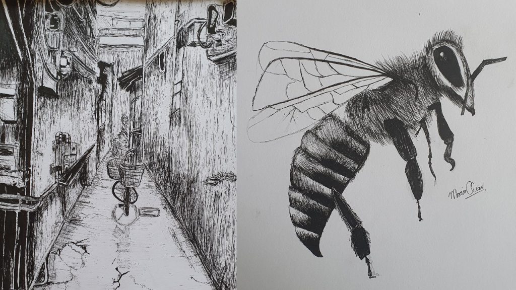 Working with pens and watercolours, the duo’s collection of original hand-drawn pieces cover the gamut of their favourite subjects; anime, animals, buildings and their home city – the culturally and historically rich George Town, a quaint UNESCO World Heritage Site. On these works, the two sisters make often candid and sometime poignant observations of their subject.