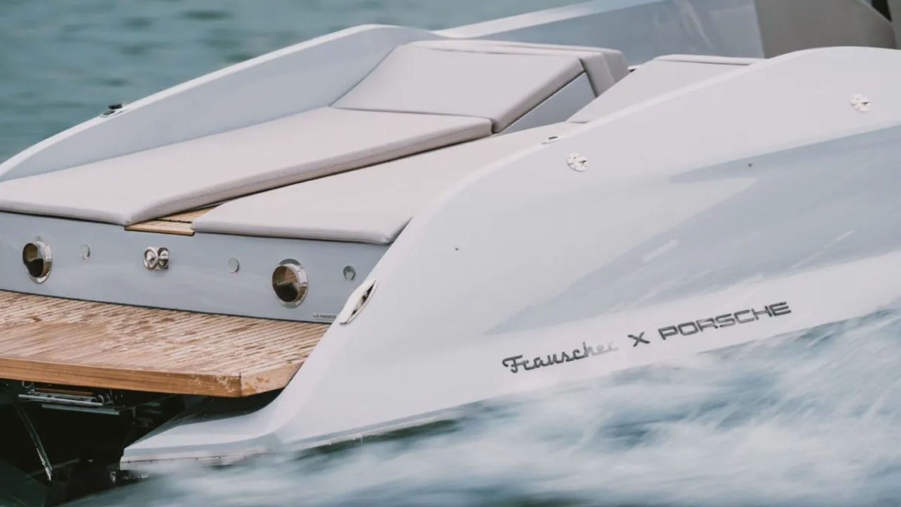 Last October, the Frauscher x Porsche eFantom launched in Geneva using the drive train from the Porsche Macan and showing off a top speed of nearly 50 mph, with the potential to break 60. At a 25-mph cruise speed, the 28-footer also had a respectable 30-mile range.