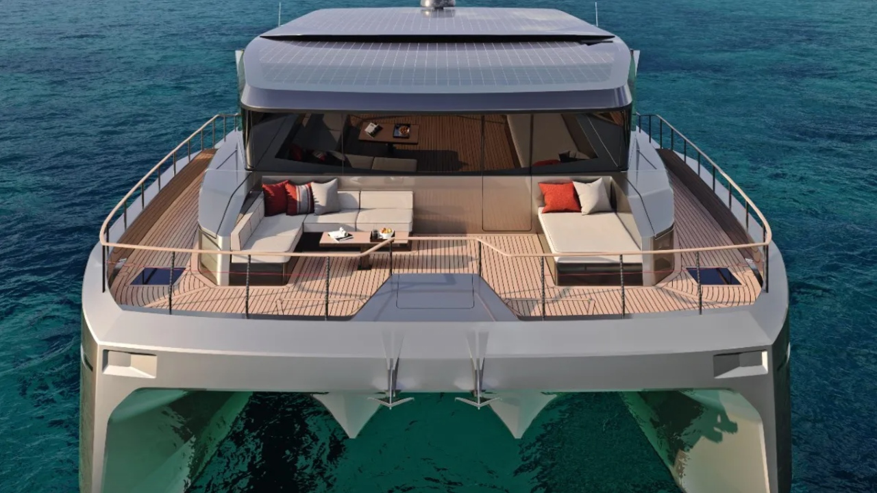 Cosmopolitan Yachts incorporates solar panels across the top deck of its 70-foot power cat, which feed its banks of lithium batteries. But the Spanish builder also has two diesel generators for alternative power. The shipyard could have reduced overall weight by cutting amenities, as full electric boats must do, but the hybrid power allowed it to go full luxury.