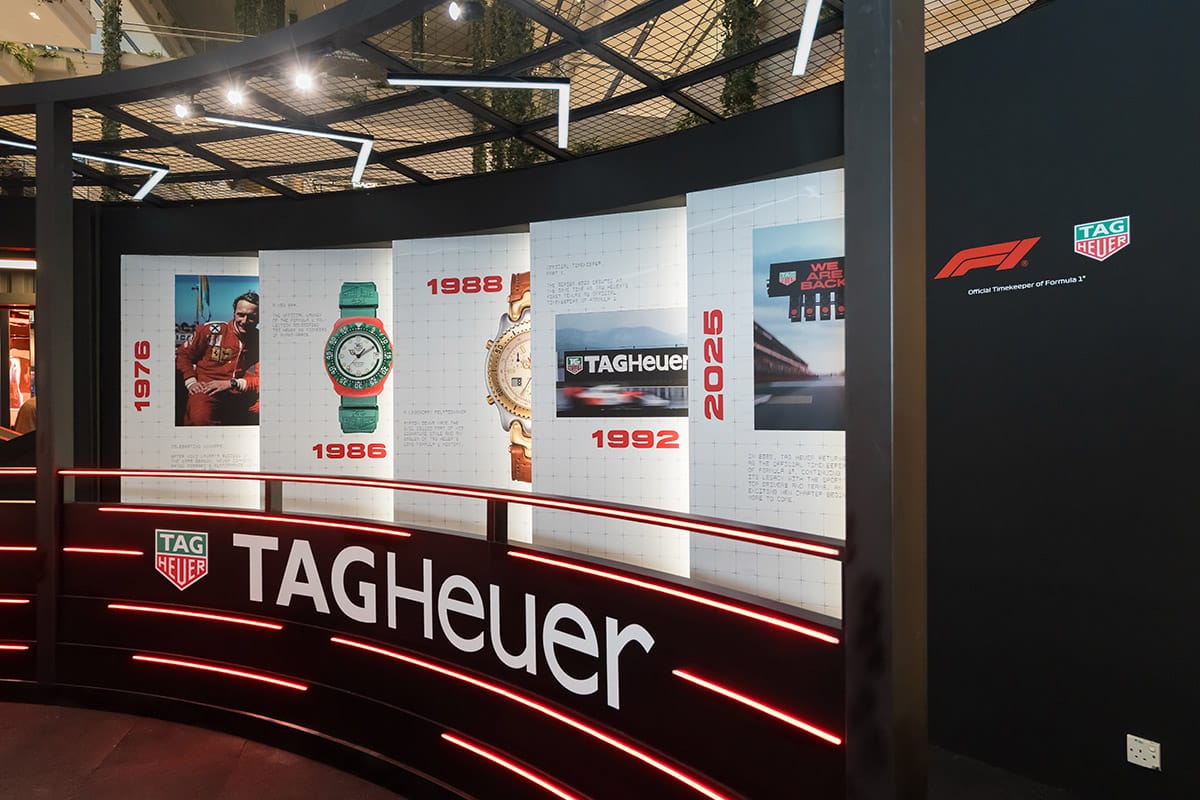 Tag Heuer is showcasing its ongoing partnership with Formula One with an exhibition held at the concourse of TRX Mall, Kuala Lumpur. Open to the public until 31 August 2025, the exhibition features the global launch of their new “Designed to Win” campaign, as well as heritage timepieces from TAG Heuer’s Museum Collection, such as the first-ever Tag Heuer Formula One, and even a display of a genuine Formula One race car.