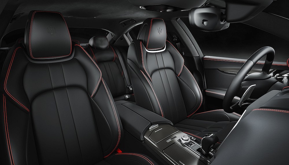 Nerissimo is an Italian expression that means ‘the blackest’, so it’s a fitting moniker for a car where the Urano wheels (all 20 inches of them), door handles, exterior trim and grille are all dipped in the deepest, darker noir. The only hint of colour on the exterior of this North America-only Maserati edition are the brake calipers – red – and the silver gleam of the Il Tridente logo.