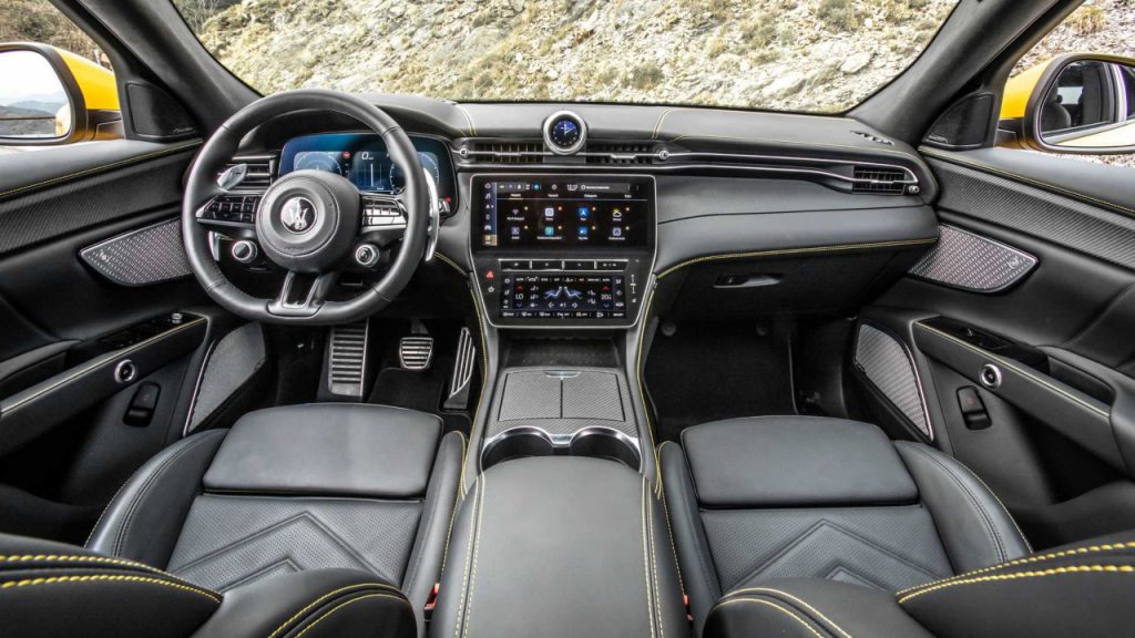The Trofeo is the performance flagship, perched high above the base GT and what’s expected to be the best-selling Modena, both of which feature a mild-hybrid 2.0-litre four-cylinder mill packing 296 hp and 325 hp, respectively. No word on Trofeo pricing yet (though we suspect it to be just under six figures), but it’s lavished with features like adaptive air suspension, huge Brembo stoppers, 21-inch rims and a 21-speaker Sonus Faber sound system pumping with 1,285 watts of output. And then there’s the leather, lots of leather.