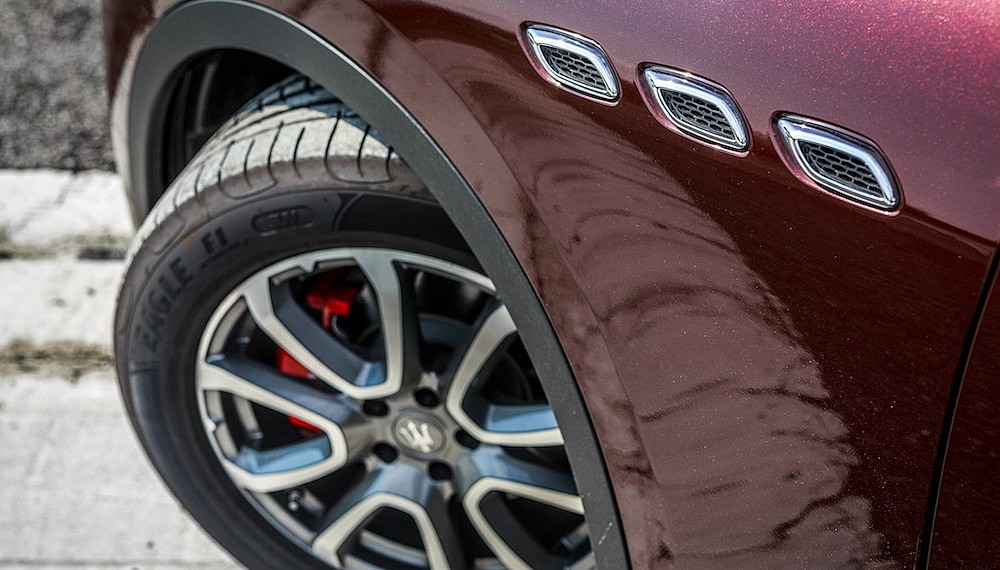Bearing more than a passing resemblance to the current Maserati portfolio, the Levante sports a proud, upright convex grille resplendent with oversized Trident and triple fender gills. These are, along with the Saetta badge on the C-pillar, the emotional draws of the beast’s skin.