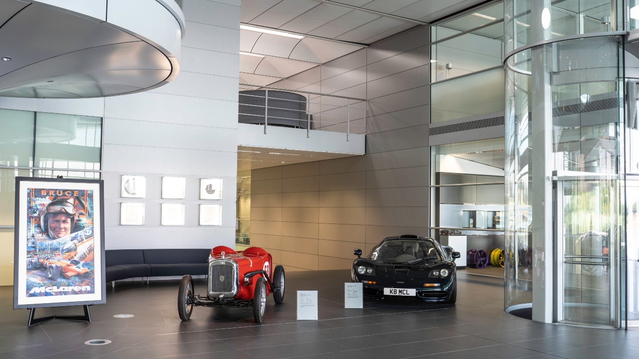 In the McLaren complex, there is a solitary non-McLaren car, one which occupies a prime position in the Broadway. It is a red 1929 Austin 7 Ulster, heavily modified—the suspension is lowered, and the fenders, doors and windscreen have been removed. These modifications were made by a then-15-year-old New Zealander named Bruce McLaren, who worked on it along with his father. As the story goes, they acquired the Austin as an entrepreneurial project, with the intent to sell it afterwards. Instead, McLaren drove it to his first racing victory at a local hillclimb in 1952. The trophy for that race is a tiny, palm-sized thing, is currently displayed on one of the many shelves of the Broadway. It looks comical next to a towering, elaborate F1 trophy—but there it sits.