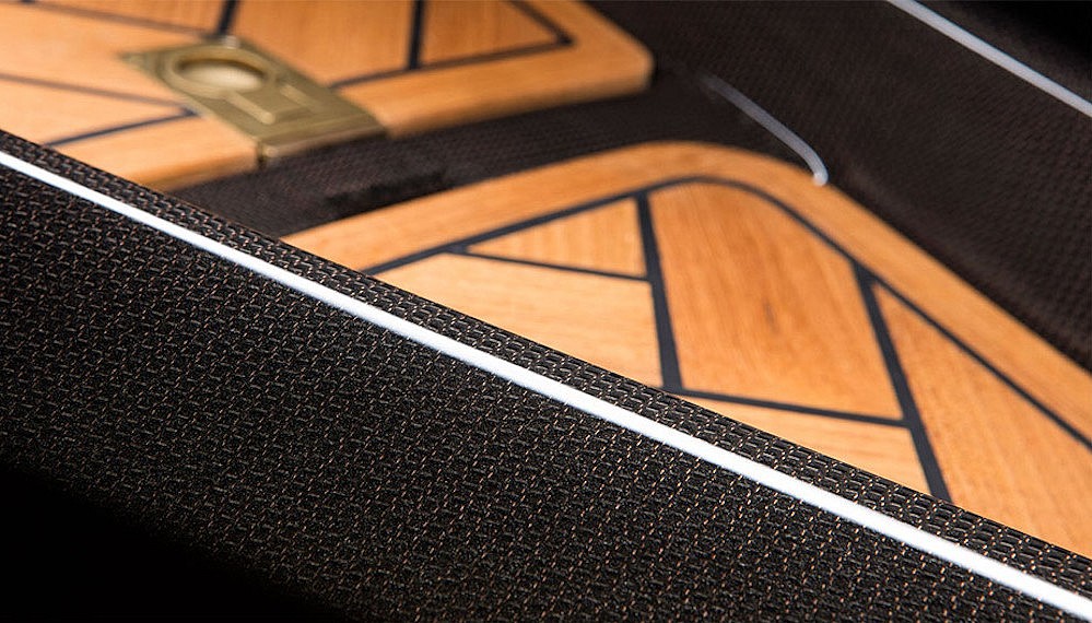 With a hull made from copper-woven carbon fibre, the Monocoque Palle is lighter than it looks. And it looks stunning. The copper wire woven into the carbon fibre not only gives the dark outer surfaces texture, but also flicker in the sunlight. The teak surface, laid in a herringbone-like pattern, was handlaid by Maestri d’Ascia, a renowned artisanal boat craftshouse in Genoa. So streamlined is this design that the oars can be tucked into the side, allowing for easy storage and even easier transportation. And if you’re more a fan of motorised transport, word is the BorromeodeSilva is working on a version with a integrated small electric motor.