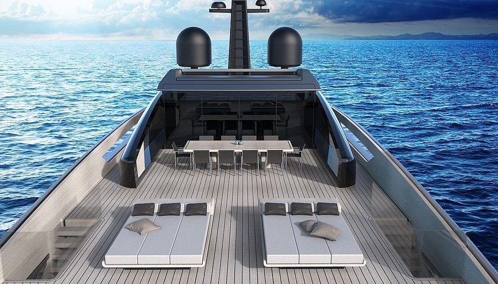 Besides its planing hull, the S533 Saetta superyacht makes great use of an exceptional amount of glass to bring in the natural light and to provide incredible views. Moreover, its modern lines give the Saetta a decidedly contemporary edge. The concept features a 30-foot/9.1-metre beam, giving the S533 Saetta the ability to accommodate 10 guests in four en-suite staterooms, plus a full-beam main-deck master suite. In addition, the yacht houses nine crew in five cabins.