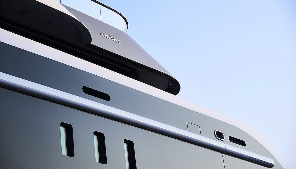 The design also includes an innovative, enclosed stairway on the aft helipad that can be shut while the helicopter is landing or taking off, so that owners and guests don’t have to deal with the helicopter’s exhaust fumes or downflow from its blades. “Enclosing the stairways also preserves the flow of the superstructure,” says De Basto. “It provides an aesthetic and practical solution for the helipad.”