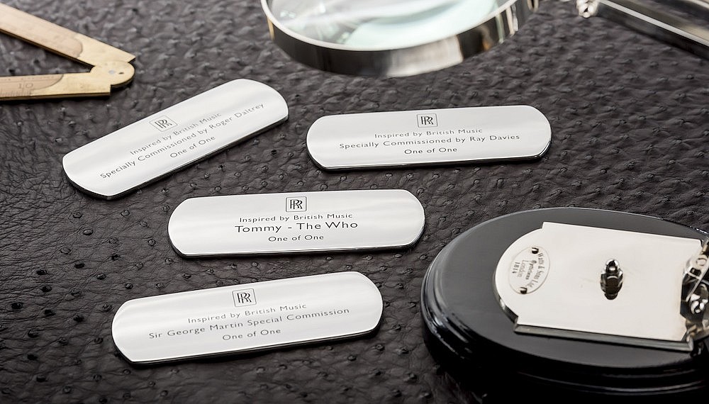 Although the Who was renowned for its anti-establishment anthems, its lead singer chose two of the marque’s iconic symbols of luxury as his canvas to pay tribute to the group’s Hall of Fame history. One of his Wraiths features the band’s bullseye logo on the dashboard clock and backseat “waterfall” section, and copper door flights engraved with lyrics from the songs “Join Together” and “I Can See for Miles.” Headrests bear Daltrey’s embroidered signature on the front and, on the back, a depiction of the infamous moment that the late Keith Moon’s drum set exploded on television in 1967 (not the cause of the drummer’s demise).