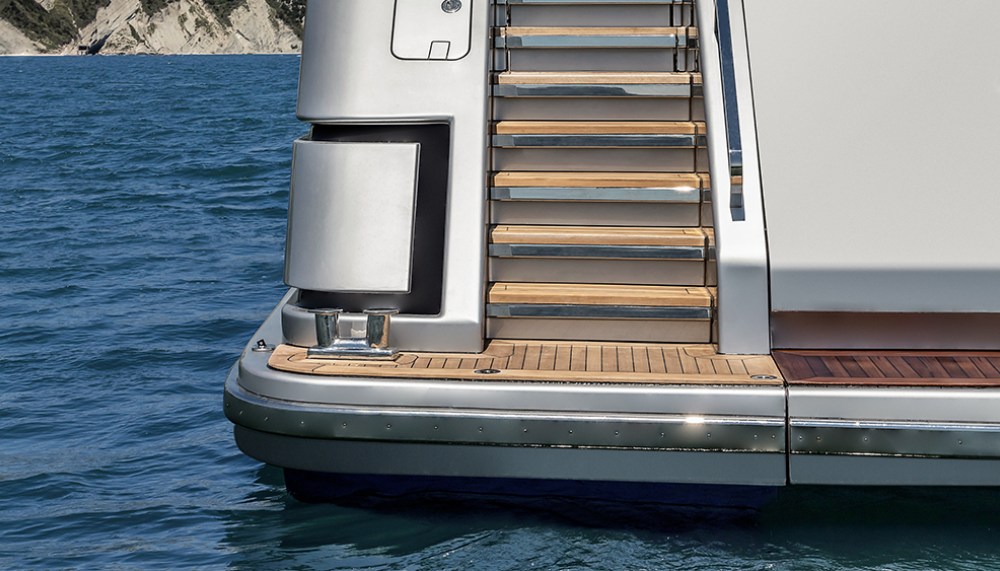 It is also the manifestation of a wish that creative force Carlo Riva shared just before he died in 2017 at age 95. “This is the dream of Carlo Riva coming true,” Galassi says. “He told me one day, ‘Make a stainless-steel displacement Riva like we did in the 60s,’” referring to the Caravelle and Atlantic motor-yacht series—steel boats, conceived by Carlo, that were considered the superyachts of that era.