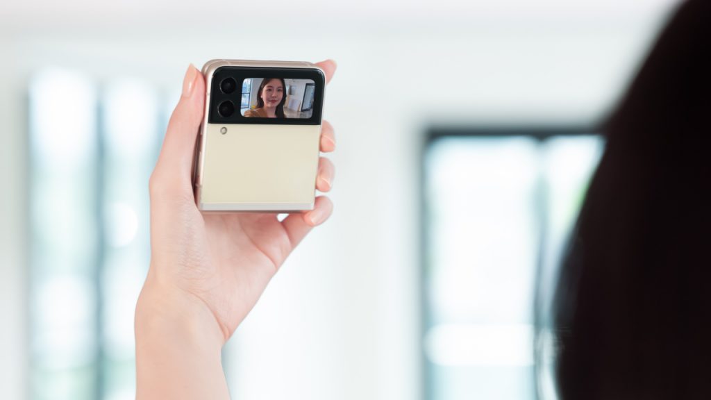 A simple double-tap on the start button transforms the cover screen into a handy viewfinder for capturing memories on the go, which is super convenient. If you don’t have a tripod, you can prop the phone to sit upright to take images or video call hands-free, making it the ideal phone of choice for anyone.