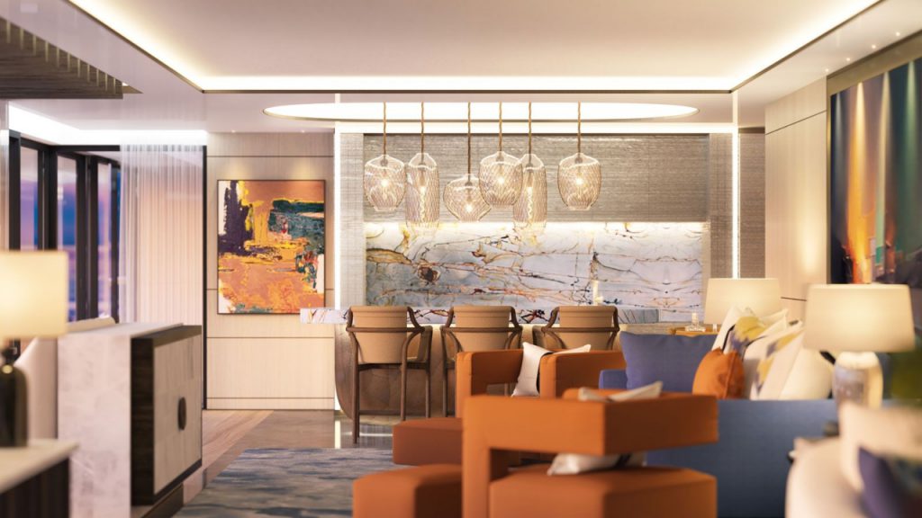 While onboard, owners will have access to a spate of restaurants and bars—there’s even a 10,000-bottle wine cellar and tasting room—as well as a sprawling beach club with water-sports facilities and a myriad of pools. Not to mention, you’ll also get to travel to the farthest reaches of the globe. Naturally, there is also a full concierge service to help you enhance your experience while on land or at sea.