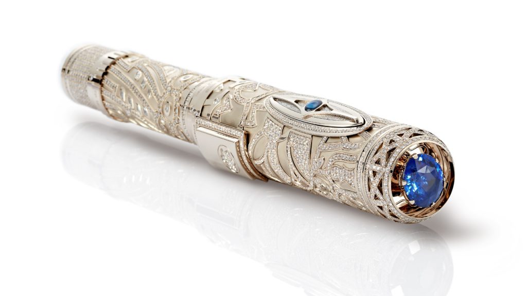 The Montblanc High Artistry ‘A Journey on the Orient Express’ is less about the Agatha Christie novel and more about the historical luxury travel route—which is due to be relaunched soon by the Accor Group. The series includes a one-of-one writing instrument decorated in the usual High Artistry fashion: crafted from solid gold, with an Art Deco pattern on the cap expressed with diamonds and more gems that trace the original 3,000km route. A button-operated snap-cap mechanism conceals the solid gold nib and its engraved steam engine. It comes with a case, too, perfect for the traveller; intricately decorated wood not only holds the fountain pen, but also an inkwell and mechanical watch with Minerva 62.00 movement.