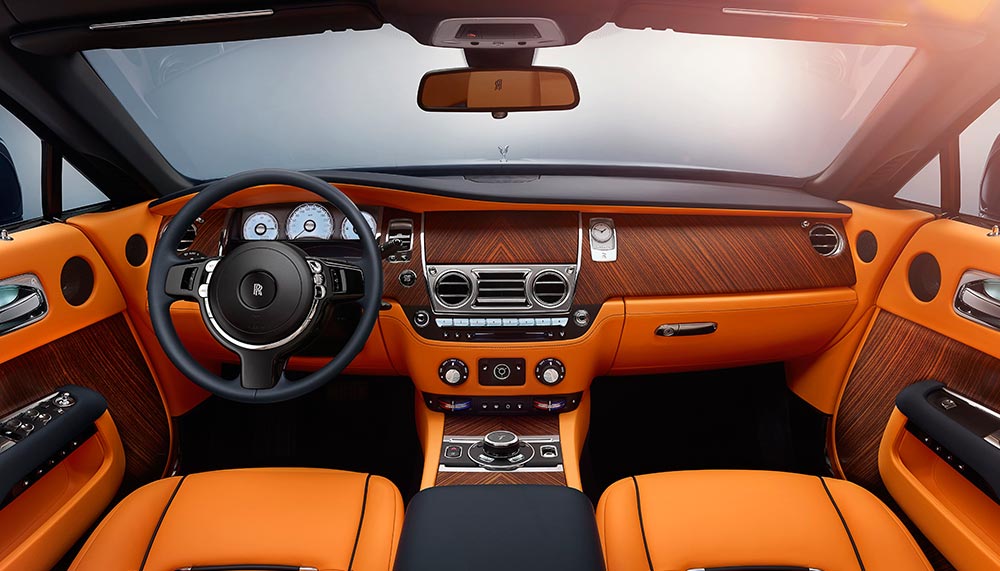 Inside the cabin, the opulence of details is best exemplified by the prowess of its bespoke services. Polished chrome and satin-finished touches abound, from gimballed air vents and tread plates to ashtrays. Automotive tailoring by Rolls-Royce, as it were, guarantees that ‘no request is left unexplored’. Thus prospective owners of Dawn may personalise their unique version from over 44,000 external paint hues, countless wood veneer options and leather styles – with the only hard limit being one’s imagination.