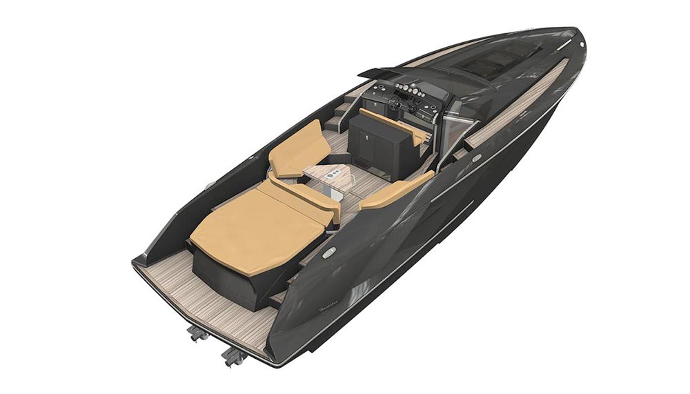 The new 1414 Demon flagship, 14 feet longer than the 1017 Lido, is another head-turner for the Austrian builder. Priced at about $832,500 (RM3.43 million), the 46-foot yacht – with Frauscher’s signature vertical bow, low profile, and flared stern – is designed for serious offshore cruising. Among the three power options are twin 520 hp 8.6-liter Mercruiser Racing engines that give the Demon a 44-knot top end.