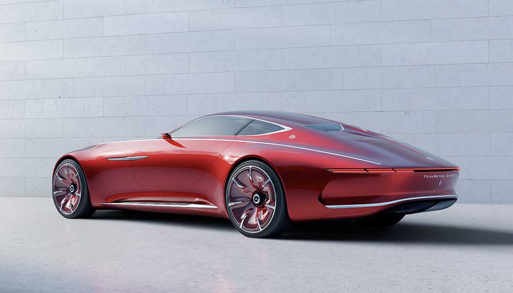 Now an exclusive specification level instead of a sub-brand, the Maybach designation was recently presented on a coupe concept. Launched during Monterey Car Week, which wrapped up at the Pebble Beach Concourse d’Elegance, the Vision Mercedes-Maybach 6 is an aero-style 2+2 seater coupe, a contemporary interpretation of classical design principles which have existed from the pre-war era. Of note are the split rear windscreen, overlong bonnet and transparent body-colour covers on the rims.