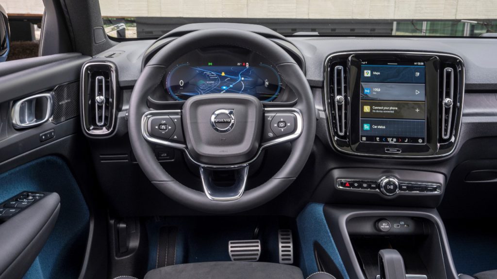 New for the C40 is an infotainment system powered by Google, including its voice-activated assistant and Google Maps. For the most part, it’s an improvement over the current Volvo interface, although we had some issues with Google Maps redirecting us from the more circuitous, set drive route onto faster highways (a Volvo representative tells us this can be remedied by setting specific waypoints). Also, Apple CarPlay is not currently supported, but we’re told it will be available at a future date via an over-the-air update.